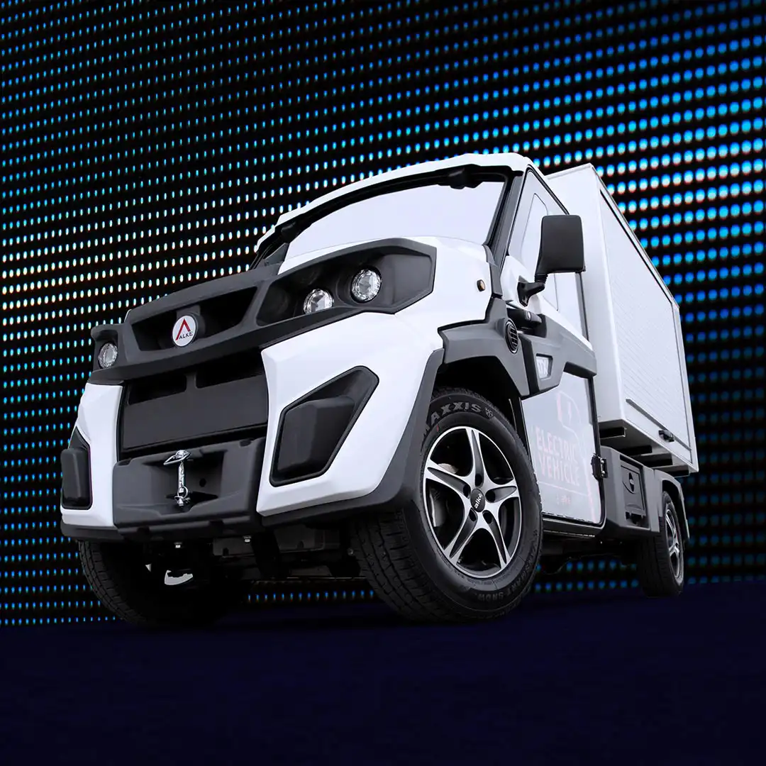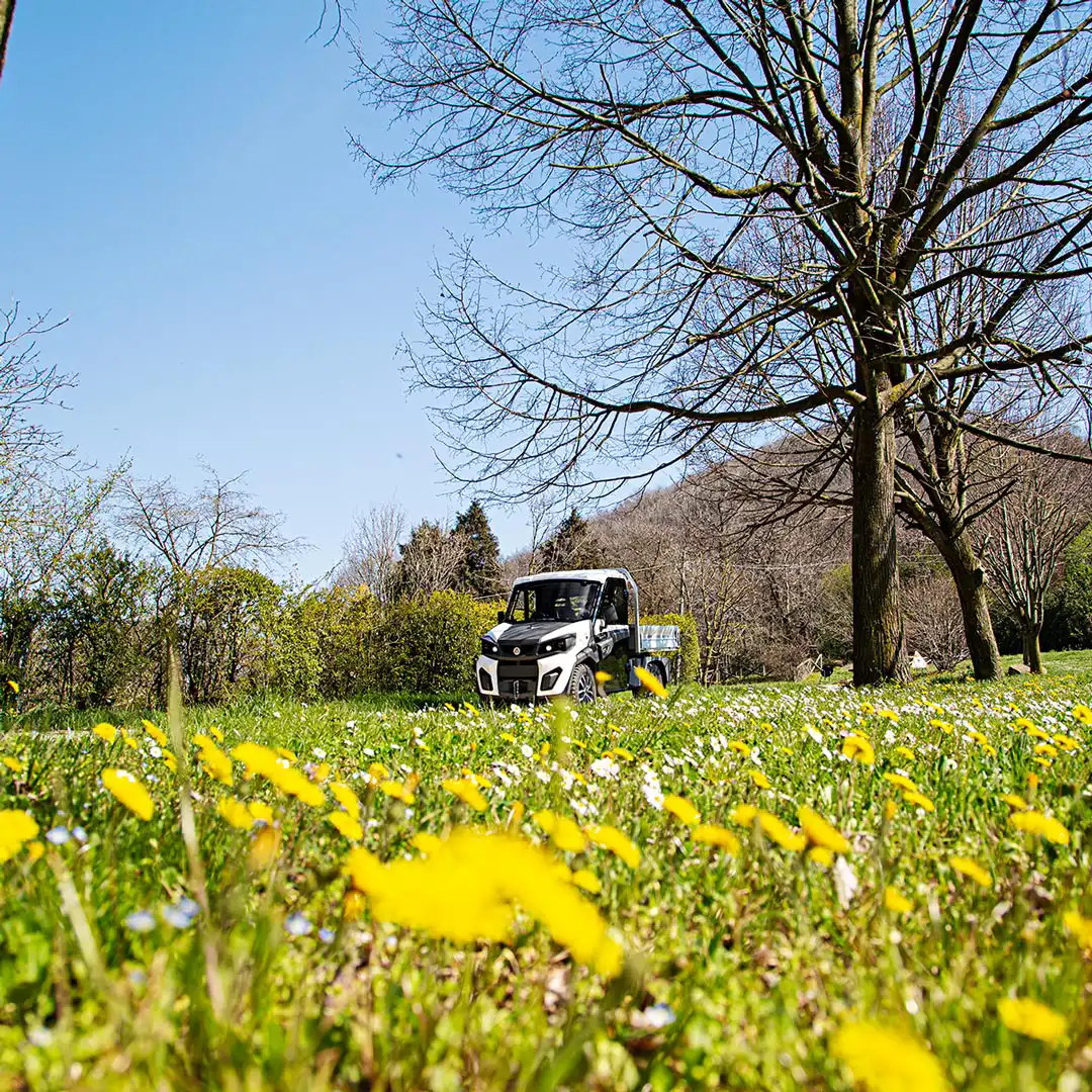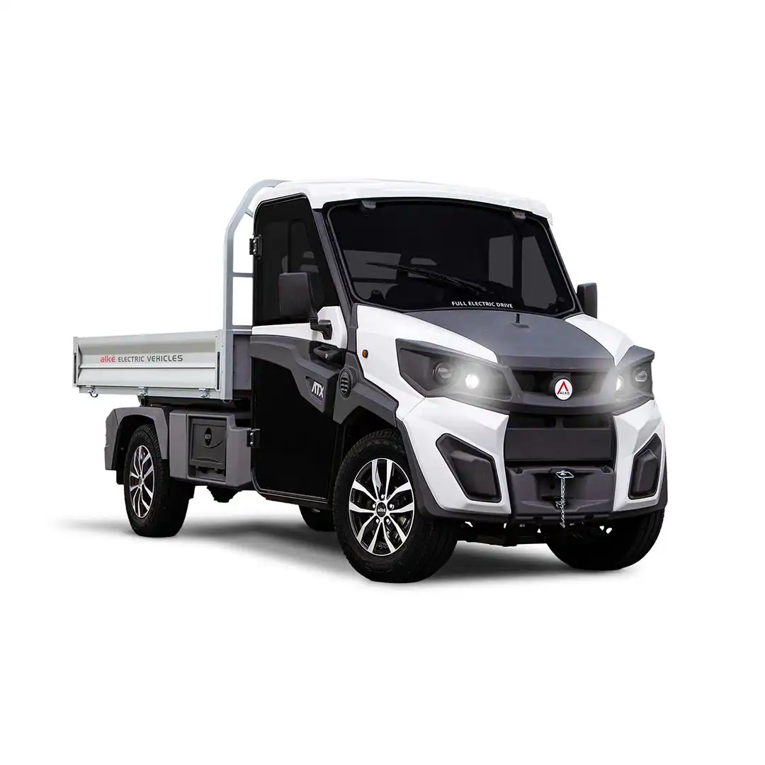 Alkè ATX 440S electric utility vehicles are highly agile, flexible and robust electric work vehicles, compact in size, with a chassis load capacity of 1,550 kg and a towing capacity of up to 4,500 kg (in private areas).